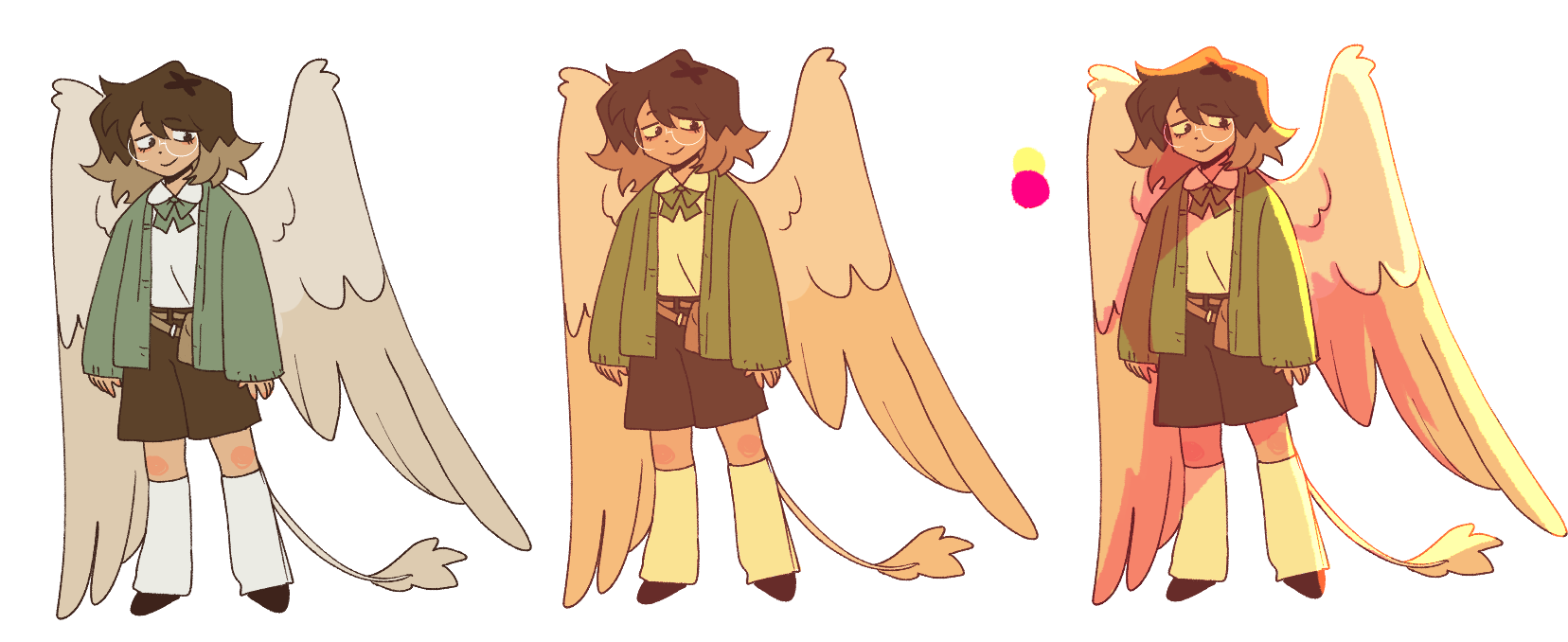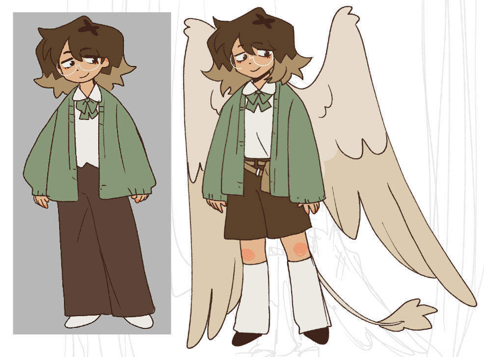 Her character within this sequence is inspired by how she usually draws herself, but adding wings for a fantastical feel due to the context of the topic thats showcased through dialogue.